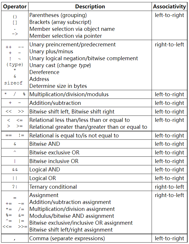 C Operator Precedence and Associativity